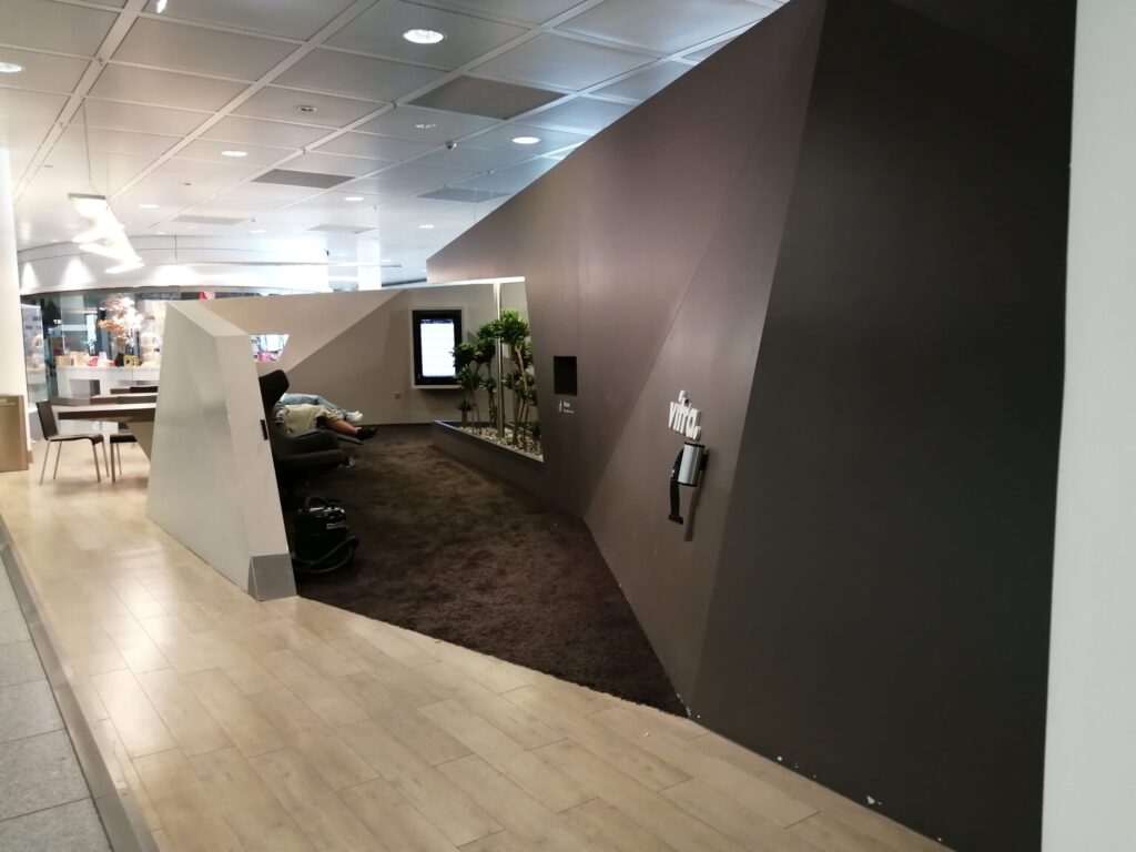 ターミナル内には、周囲から壁で仕切られた休憩スペースがあります。プライバシーもあり、リクライニングになっている椅子があるので快適です。